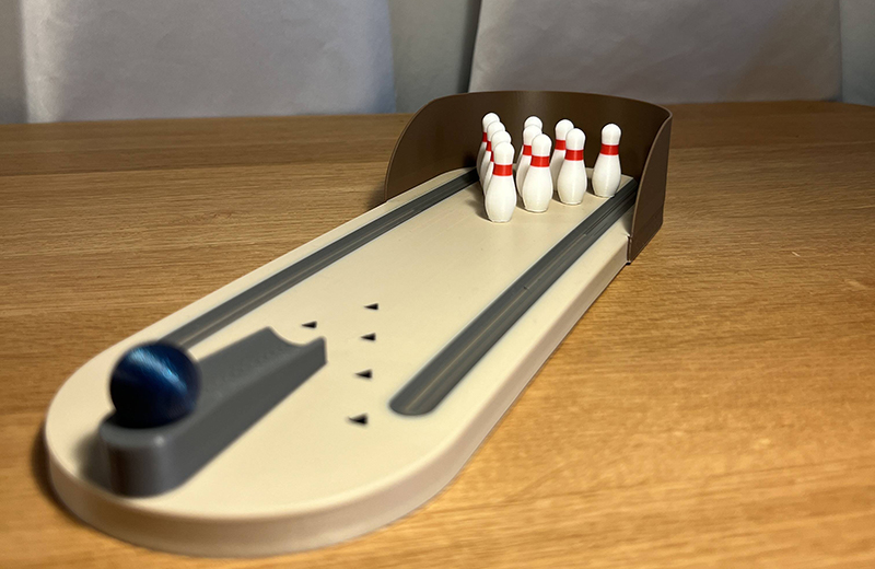这类模型提供了一个微缩的球道(长约15-25厘米),球瓶和球可以收纳在其中。有些设计还包含了积分卡和记分牌,体验更完整。打印完成后简单组装即可,可玩性很高。